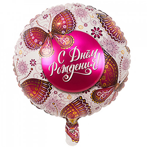 Шар круг, С ДНЕМ РОЖДЕНИЯ (18''/46 СМ)