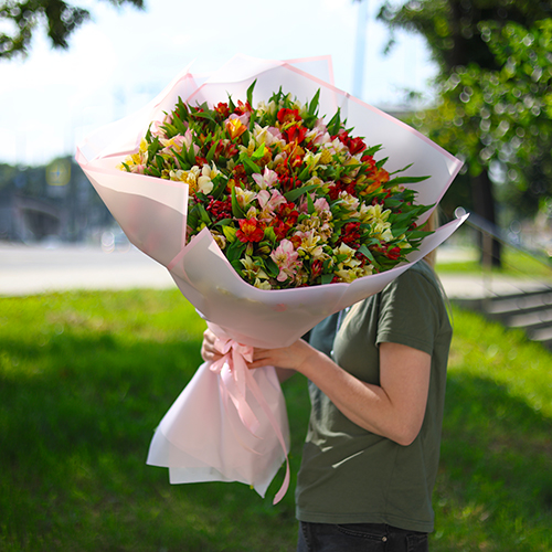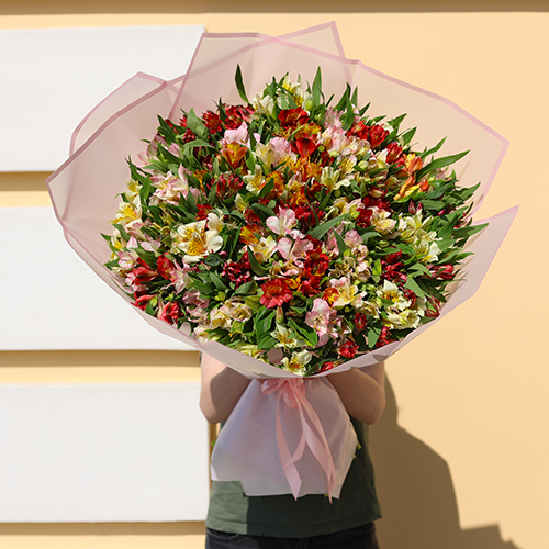 Букет из 51 альстромерии - это великолепное проявление щедрости и прекрасного вкуса. Этот букет олицетворяет изобилие и привлекает внимание своей красотой и разнообразием цветов. Каждая альстромерия в этом букете восхищает своими яркими оттенками и изящными формами.