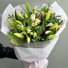 Заказанный букет вы можете забрать у нас в магазине по адресу: Москва: ул. Большая Семеновская 11с3 - с 7:00 до 24:00!