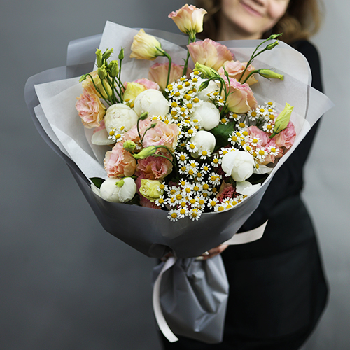 Заказанный букет вы можете забрать у нас в магазине по адресу: Москва: ул. Большая Семеновская 11с3 - с 7:00 до 24:00!