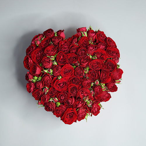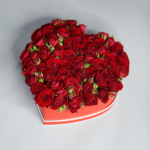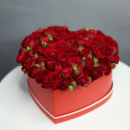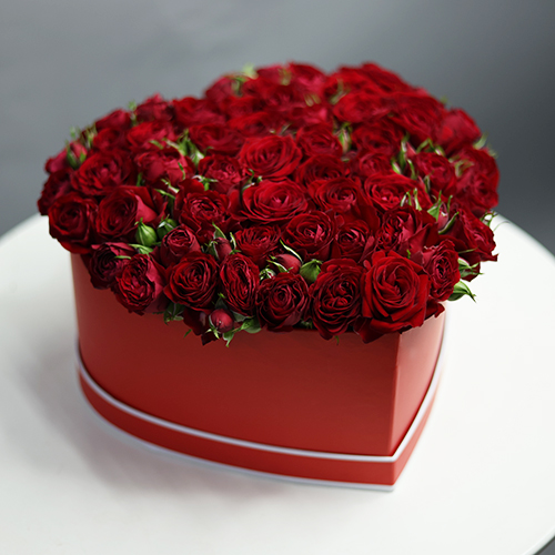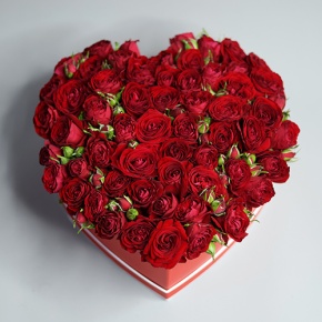 Композиция в коробке "Красное сердце" из пионовидной кустовой розы