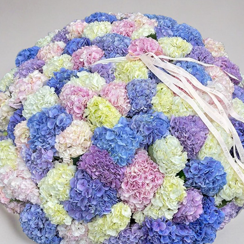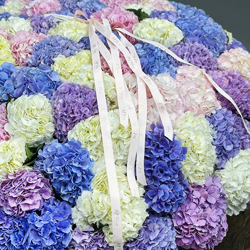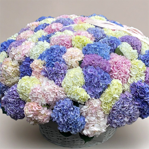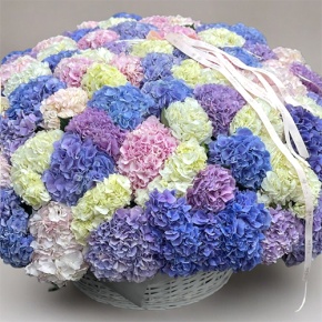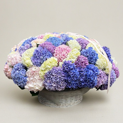 Композиция в корзине из 101 Голландской гортензии
