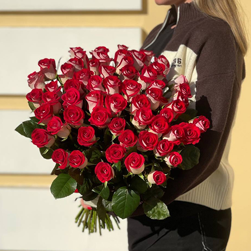 Букет из 51 рубиновой розы (50 см)