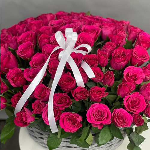 Композиция в корзине из 101 малиновой розы (40 см)