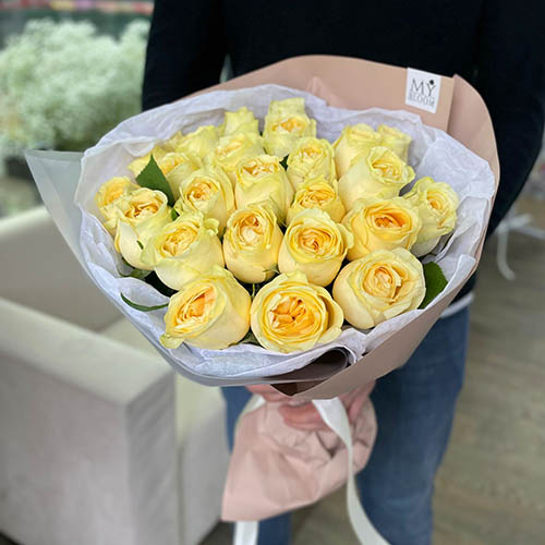 Букет из 25 пионовидных кремовых роз Баттеркап (50 см)