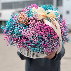 Композиция в корзине "Радуга" из воздушных гипсофил